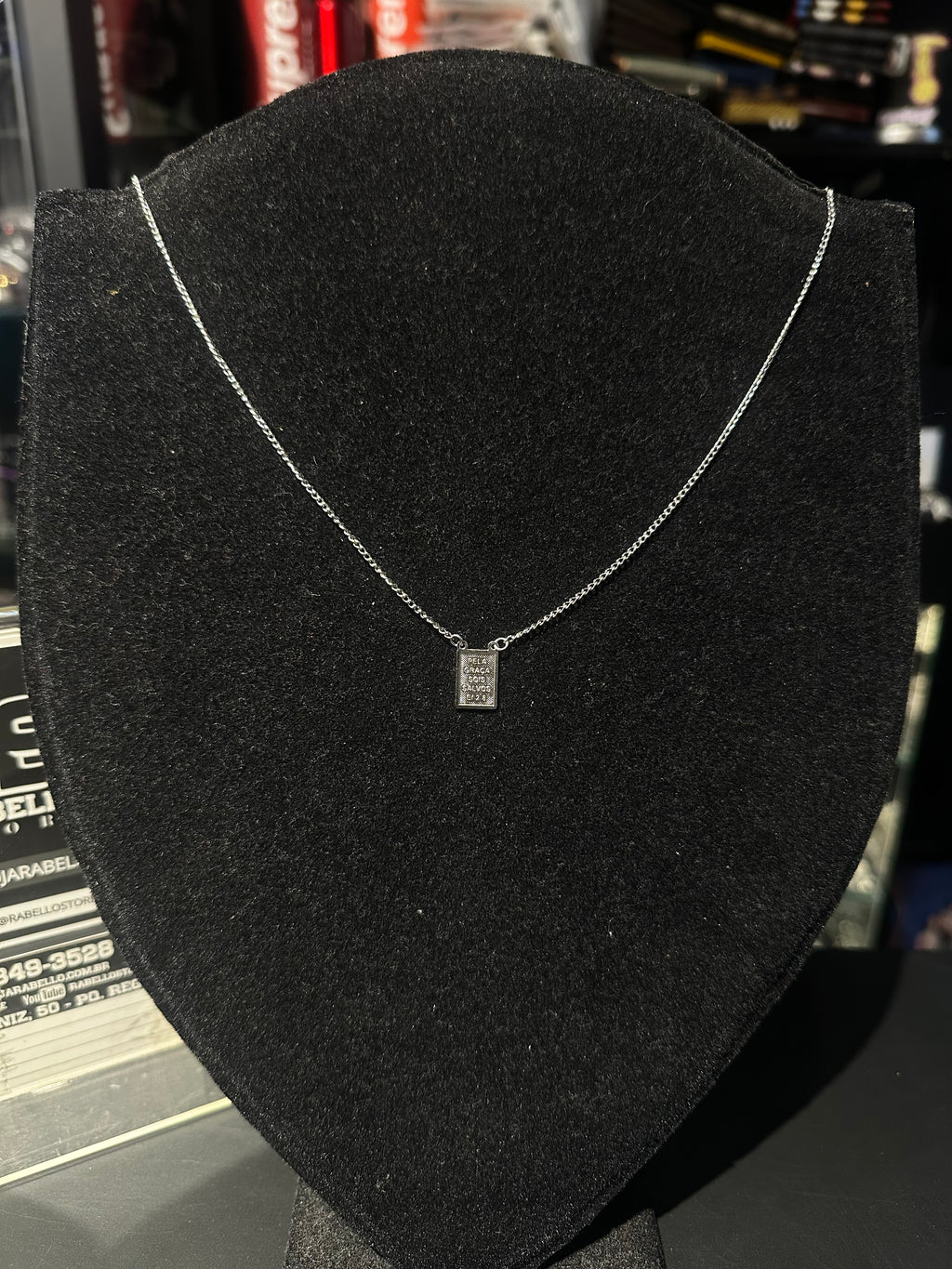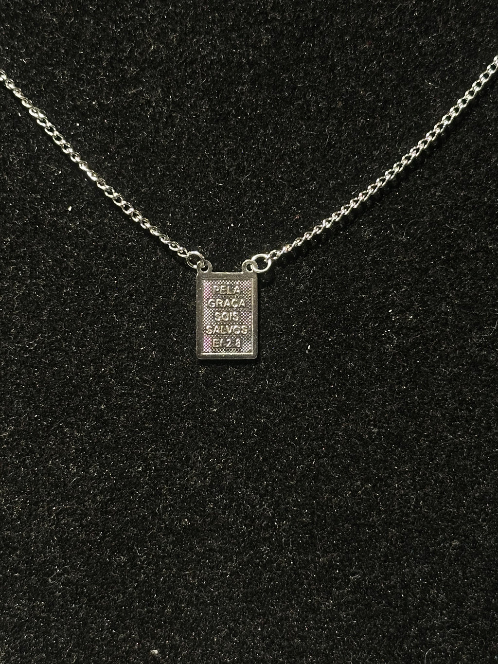 Corrente Veneziana Prata Escapulário “Pela Graça Sois Salvos” 35 CM - Pronta Entrega