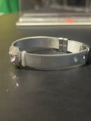 Pulseira Prata Ajustável Pingente Coração Pink - Pronta Entrega