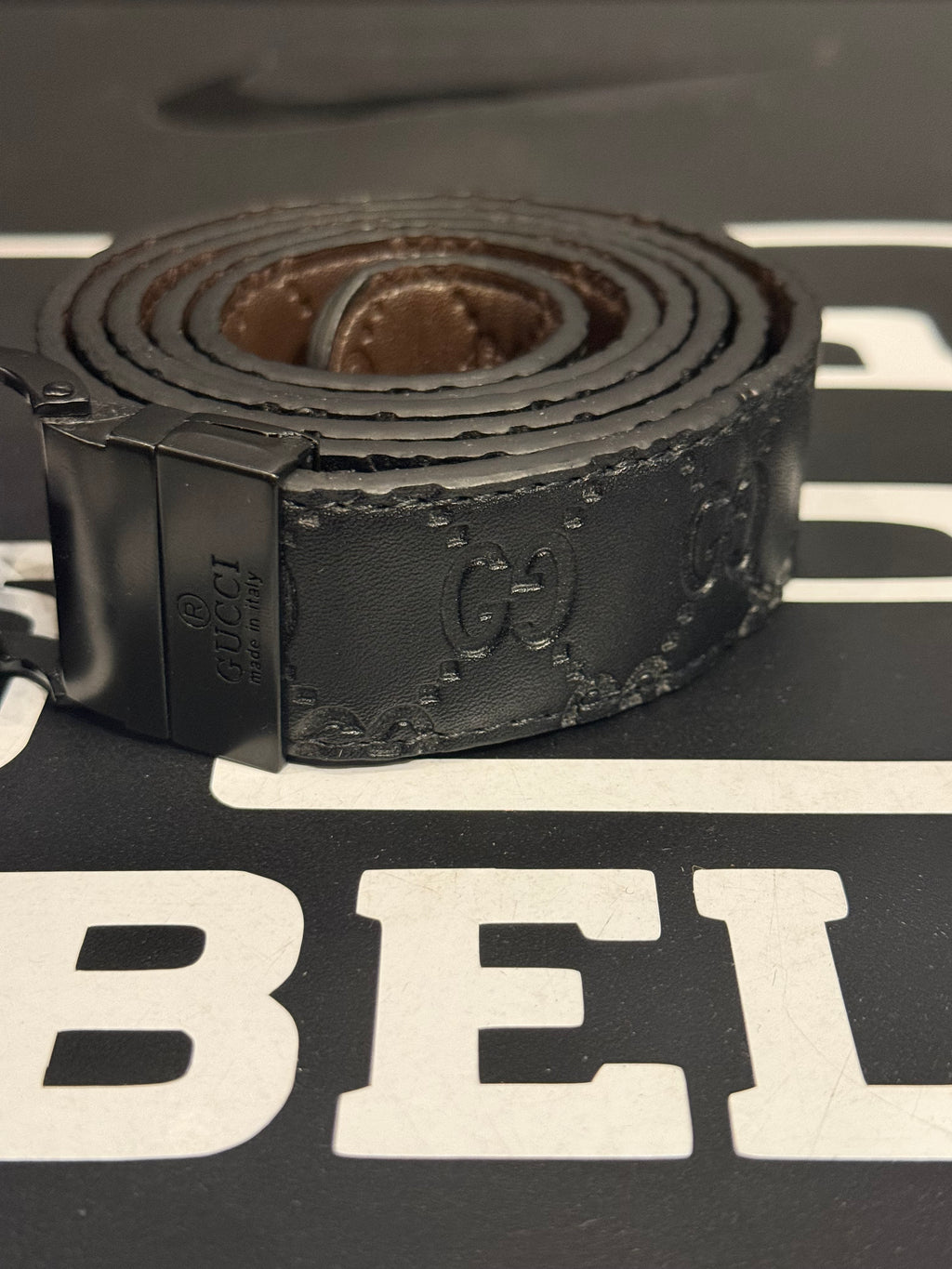 Cinto Gucci Black Estampado Fivela GG Preta - Pronta Entrega