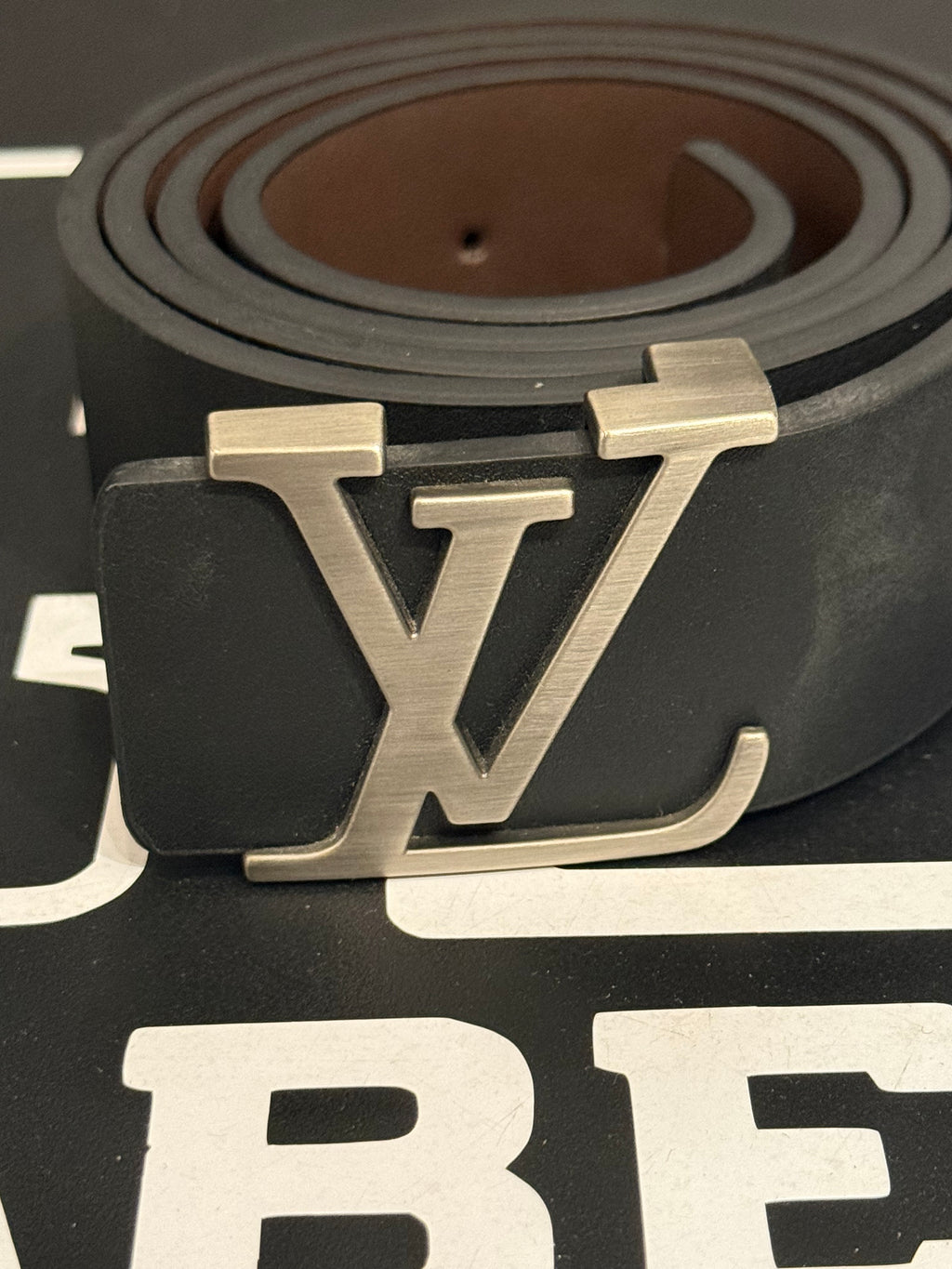 Cinto Louis Vuitton Initiales Black Logo Silver - Pronta Entrega